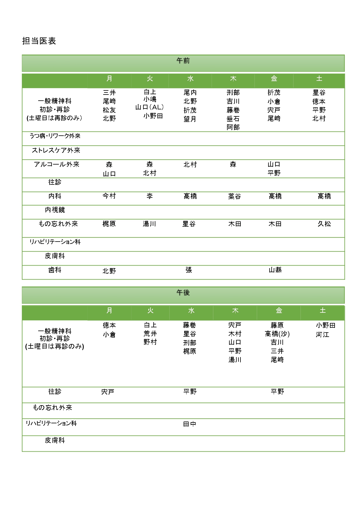 担当医の性別希望は原則、お受けできません。