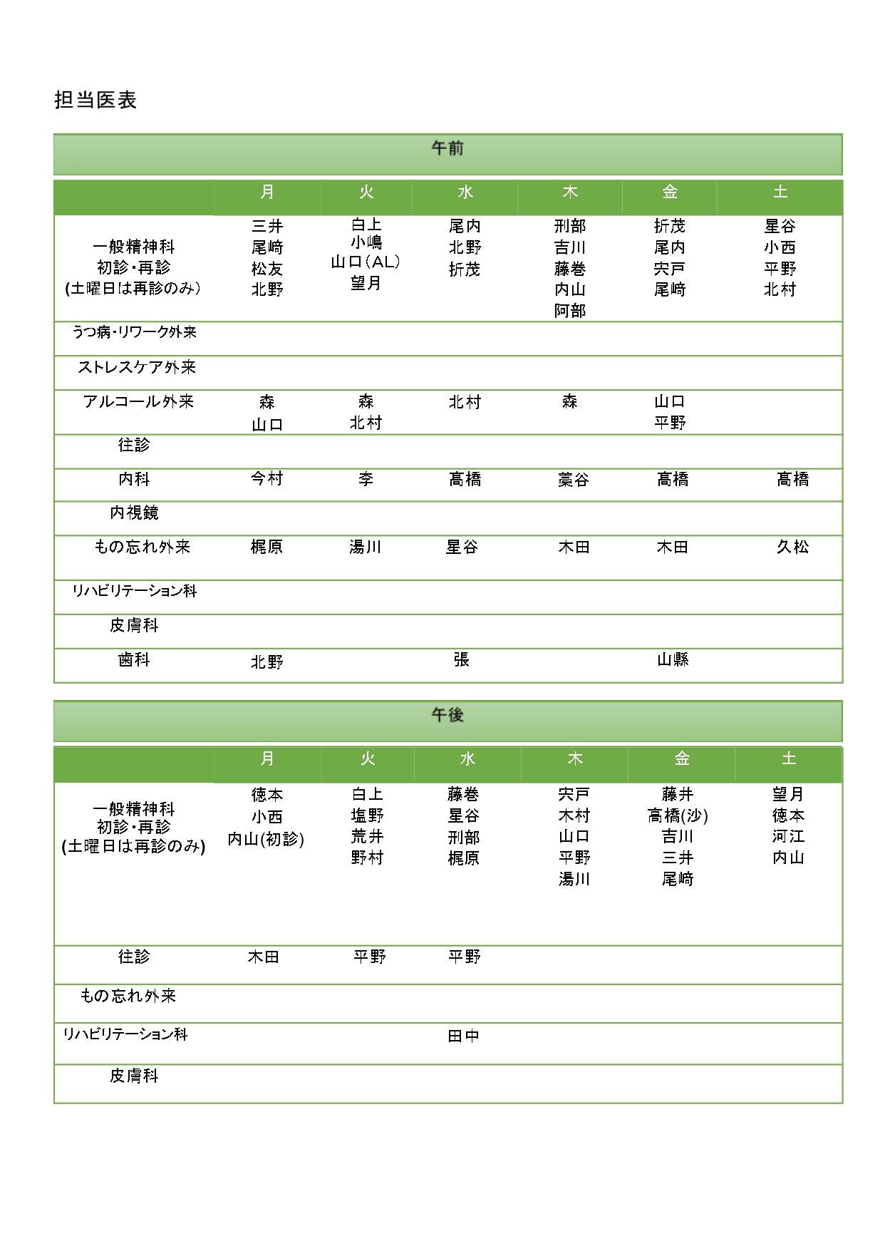 担当医の性別希望は原則、お受けできません。